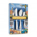 - включва: вилица (17,5 см), нож (19 см), лъжица (17 см) и малка лъжичка (13,4 см)
