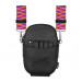 - с регулируема презрамка - в дизайн на лилаво-оранжеви геометрични фигури