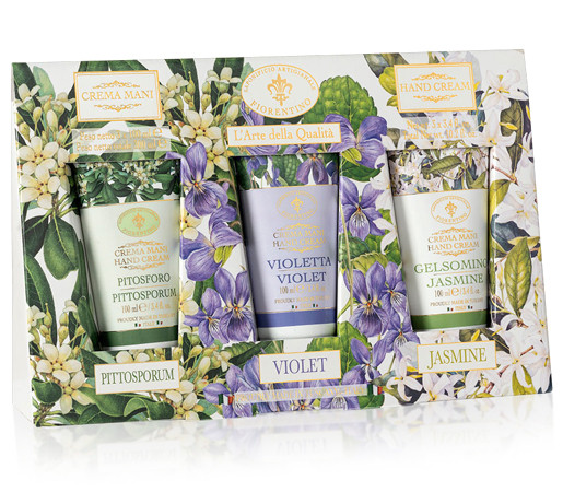 Крем за ръце Saponificio Artigianale Fiorentino - Pitosforo, Violetta, Gelsomino, комплект 3 x 100 мл