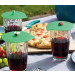 • с лек натиск върху чашата, приляга абсолютно плътно и гарантира пълна защита на напитките от насекоми и полени