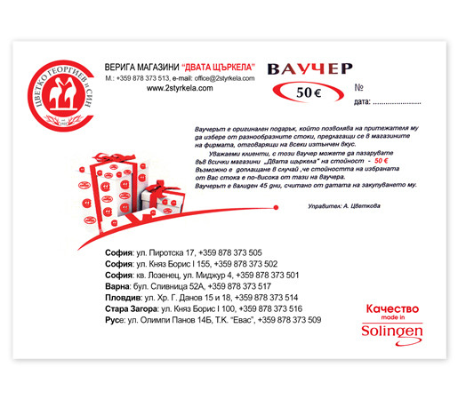 • с този ваучер можете да пазарувате във всички обекти от верига магазини „Двата щъркела“